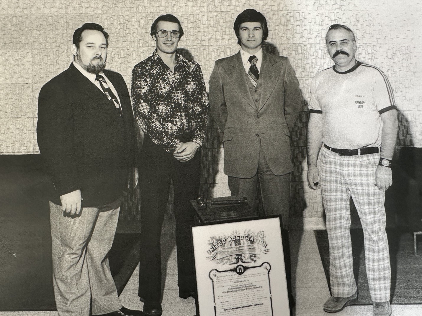 UA Sprinkler Fitters in the Ontario region date their origin back to Local 379, a Sprinkler Road Local started way back in 1919. When Quebec labour laws decreed any construction contracts negotiated outside of Quebec, Local 379 was disbanded and in 1917 the UA. Sprinkler Fitters in Ontario were temporarily merged with sister Local 787—Refrigeration Workers of Ontario. During this period, Brother Al McBride served as the Sprinkler Business Agent. By 1975 Brother Lynn Morton was working under Brother McBride as our second Agent, and Don Crichton as our President with Matt Hawrychuk as our Vice President. Finally, in 1976 the UA granted a new Charter and UA Local 853 Sprinkler Fitters of Ontario was formed.